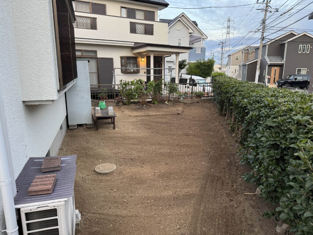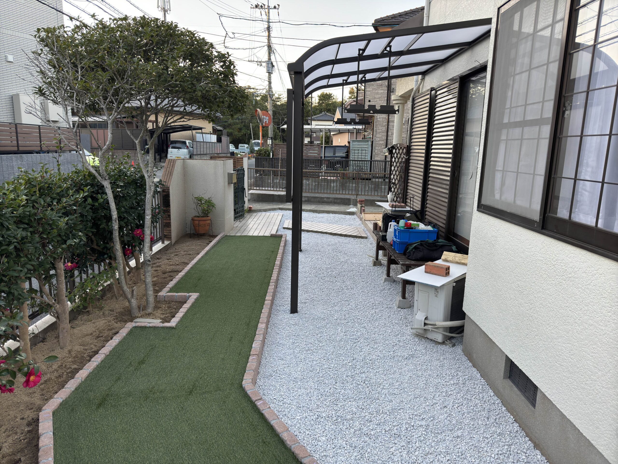 【再掲】雑草対策工事 福岡市東区K様邸 2026 1/09 作業日誌 2026年1月6日2026年1月9日 福岡市東区で行った雑草対策工事の作業報告です! ①11/5着工前 ②11/7廃材・樹木撤去完了 ③11/8鋤取り完了 ④12/11レンガ並べ過程 ⑤12/19防草シート下地整地完了 ⑥12/23途中経過 ⑦12/24リフォーム外構工事完了 before/after before after before after before after 作業日誌 【再掲】新築外構工事 福岡県糟屋郡志免町H様邸 【再掲】新築外構工事 福岡県福津市N様邸 関連記事 【再掲】新築外構工事 福岡市博多区W様邸 2026年1月6日 【再掲】リフォーム外構工事 福岡県古賀市A様邸 2026年1月6日 【再掲】新築外構工事 福岡県福津市N様邸 2026年1月6日 【再掲】新築外構工事 福岡県糟屋郡志免町H様邸 2026年1月6日 【再掲】新築外構工事 福岡市城南区K様邸 2026年1月9日 【再掲】車庫増設工事 福岡市南区M様邸 2026年1月11日 リフォーム外構工事 福岡県宗像市K様邸 2026年1月9日 【再掲】人工芝・デッキテラス工事 福岡市東区Y様邸 2026年1月9日