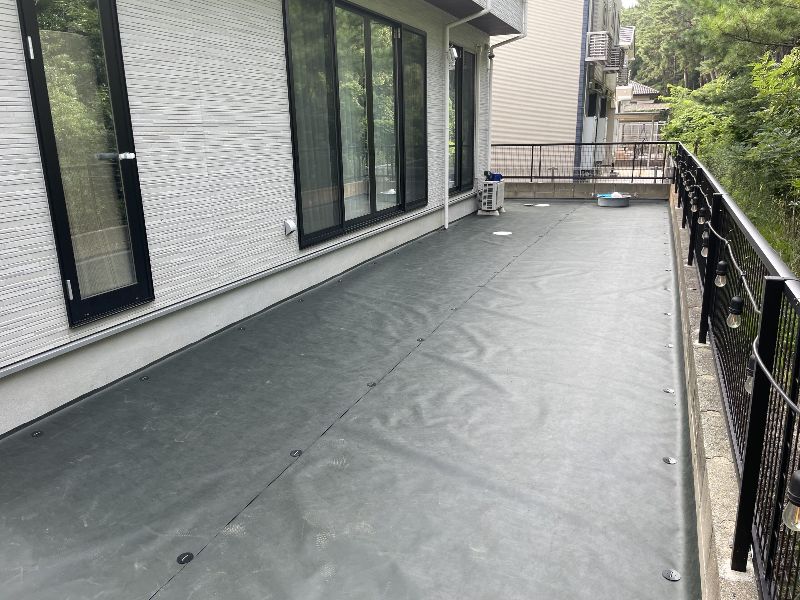 上に砂利や人工芝を敷かず、ワンちゃんの遊び場としても使われている環境ですが、破れもヨレもなく、美しい状態を維持しています。