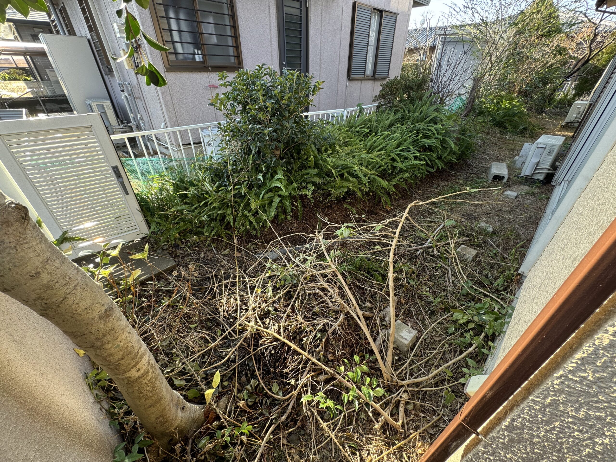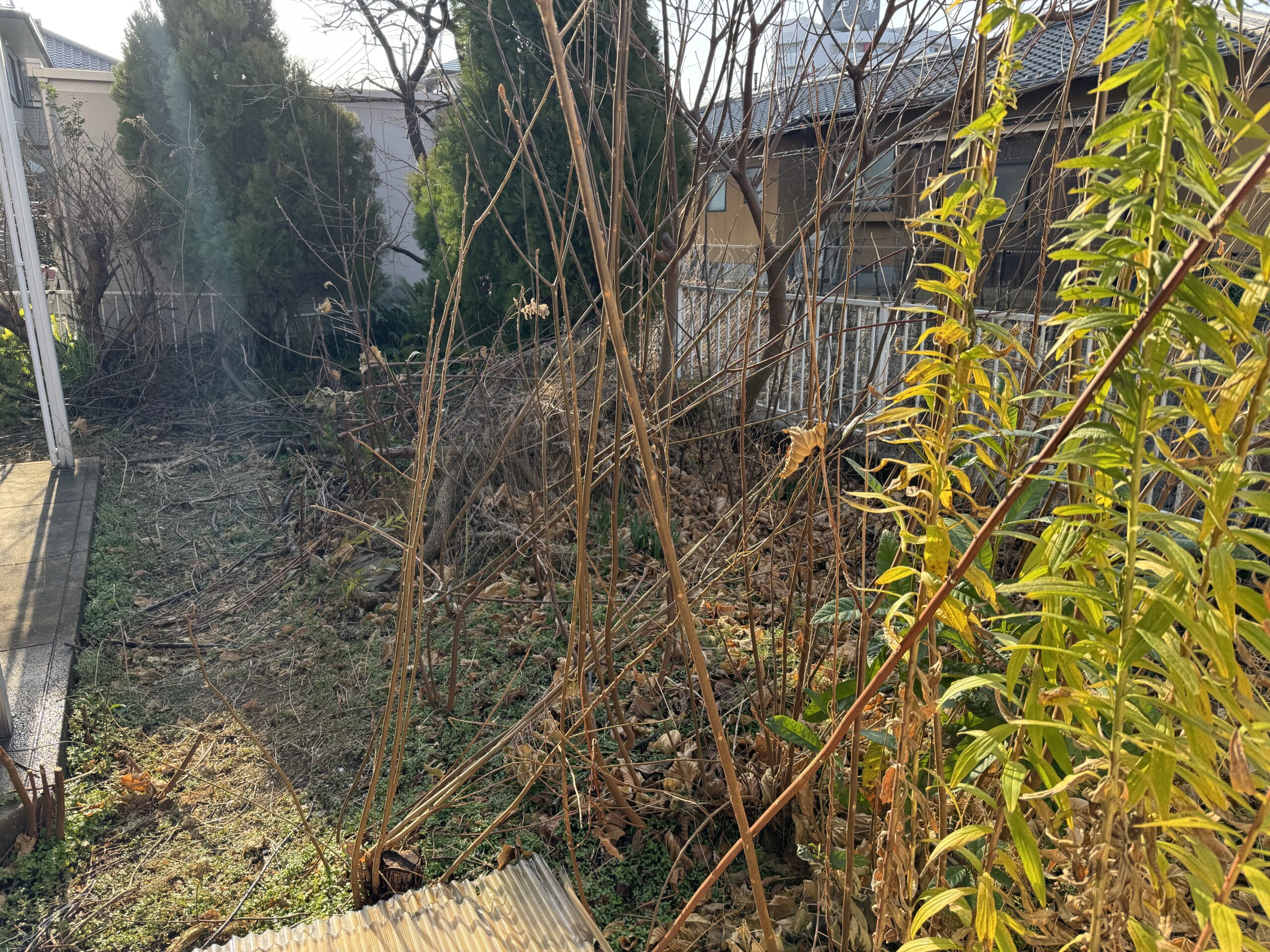 上記の写真のように、人の手が入らなくなると、お庭はあっという間に草木に覆われてしまいます。