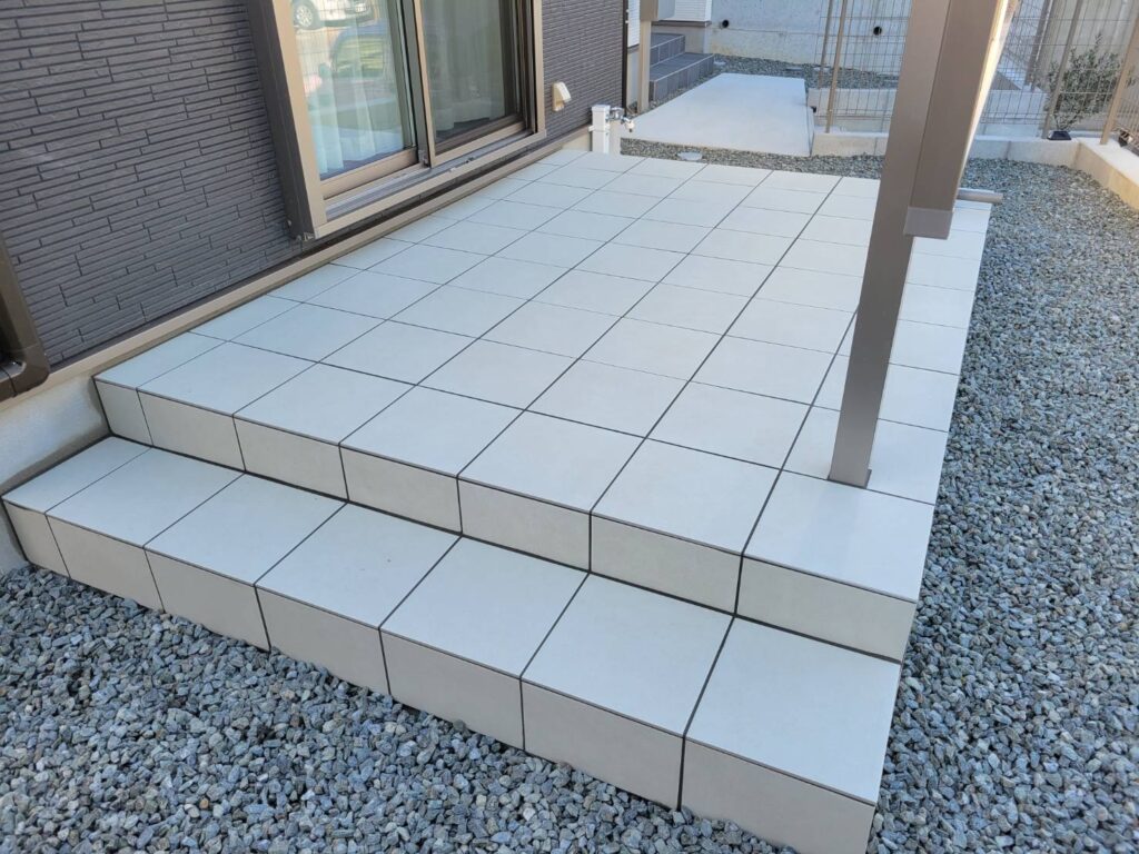 足元にはタイルデッキも整備し、お部屋からそのまま出られる「第二のリビング」が完成しました。