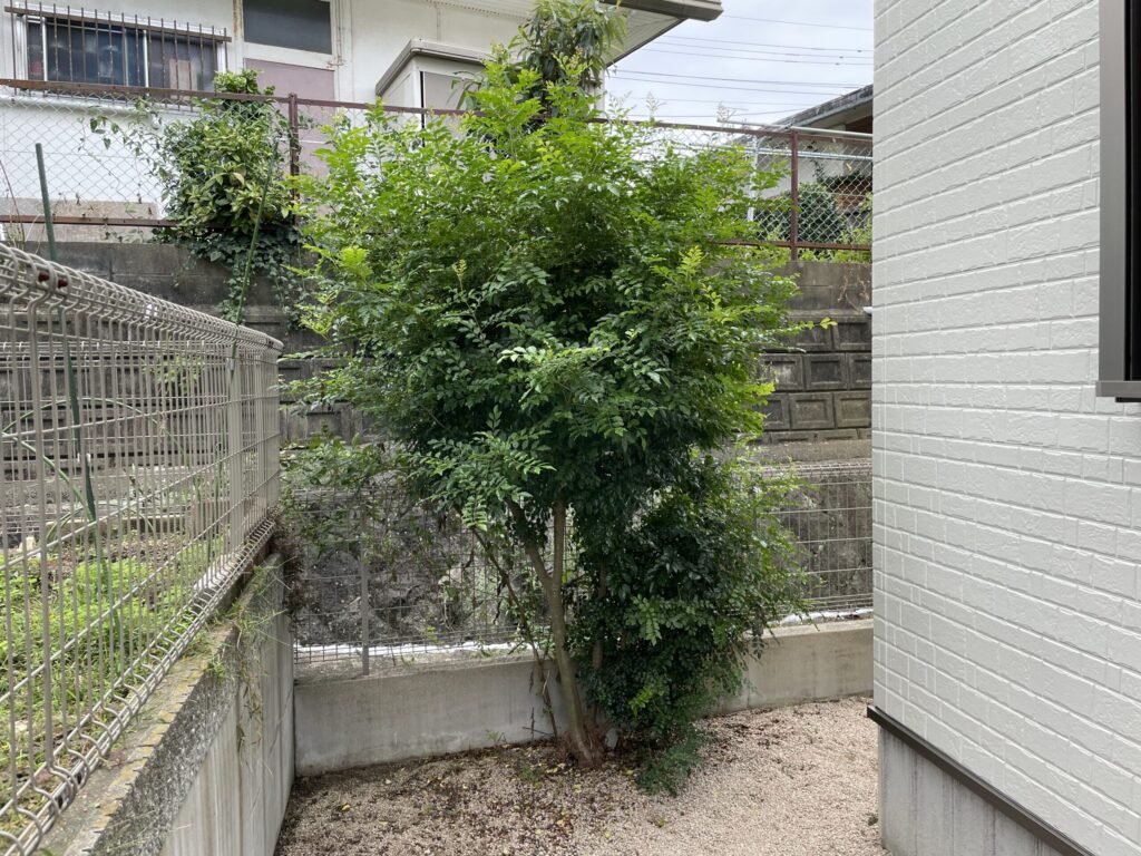 たった一本なくなるだけで、日当たりが良くなり、お庭が驚くほど広くなりますよ。