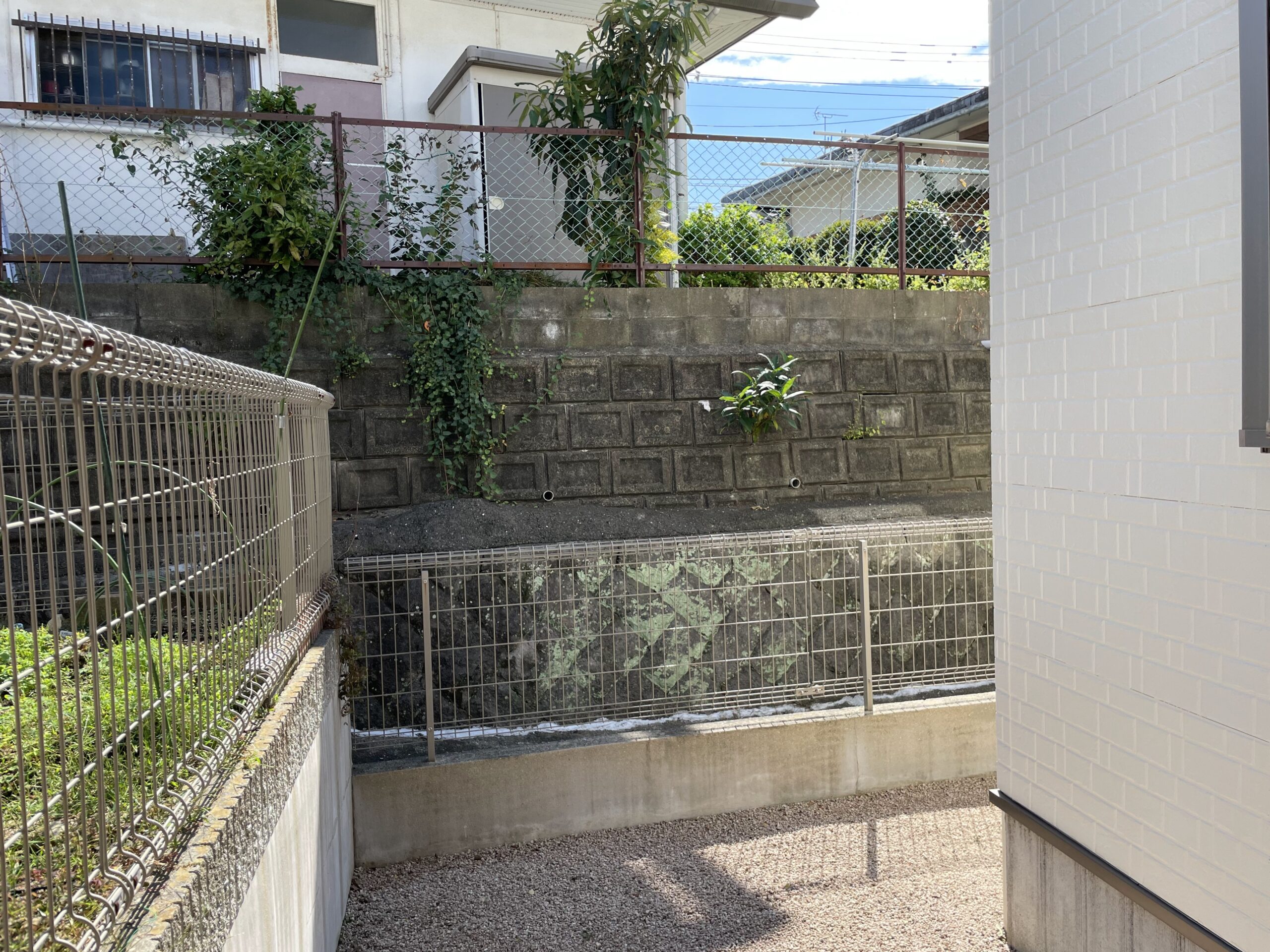 福岡市東区K様邸 虫がつき、手入れの大変だった樹木を撤去して目隠しフェンスを取り付けました。 独立基礎過程 柱設置 目隠しフェンス <使用商品>LIXIL:フェンスAB Y…