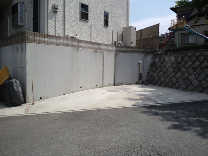 042福岡県新宮町リフォーム外構工事着工前 主なご要望 高台を利用して耐久性のあるウッドデッキを作り、敷地を有効に利用したい。 |