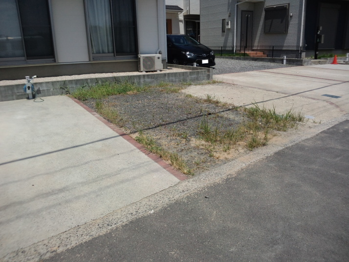 038福岡県宗像市リフォーム外構工事着工前 主なご要望 駐車場縦2台分をさらにもう1台分増やしたい。コンクリートの雰囲気を豪華にしたい。 |