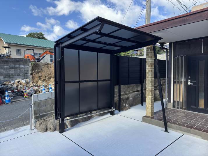 エクステリア施工例 福岡市東区 サイクルポート 目隠しフェンス取付