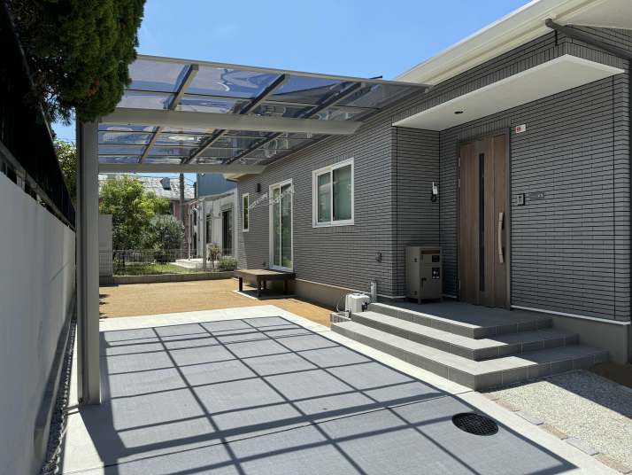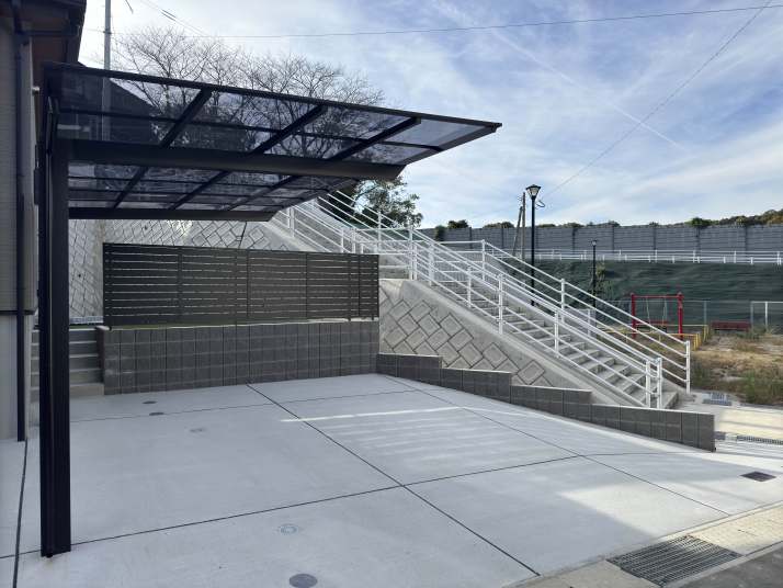 エクステリア施工例 新築外構工事 福岡県粕屋郡志免町 サイクルポート設置