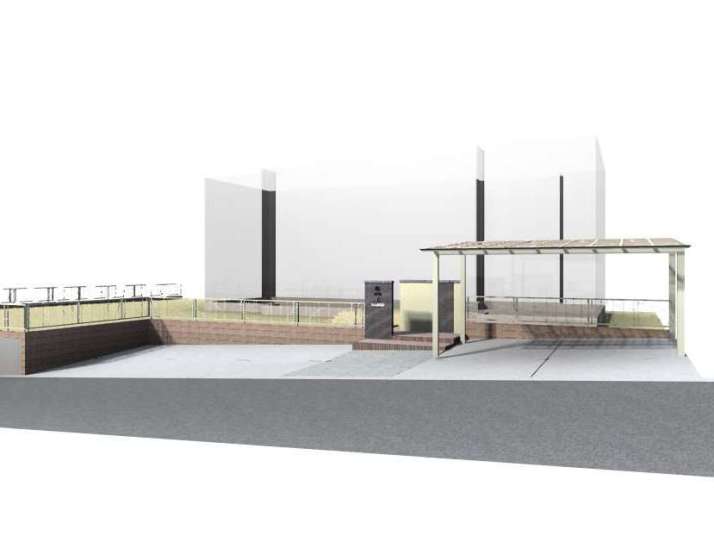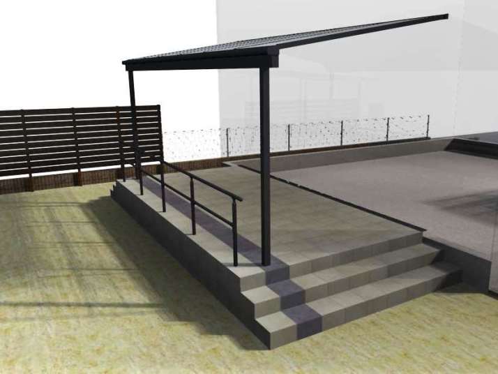 ・ベビーカーや自転車がスムーズに上がれるように階段横にスロープを設置しました。 |