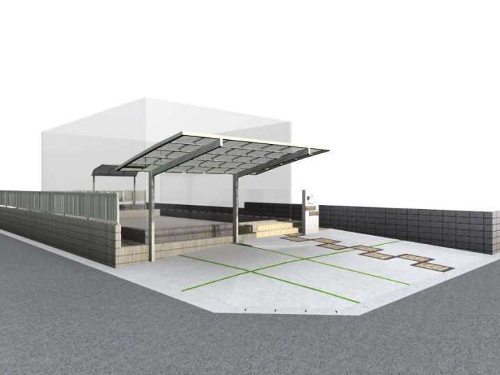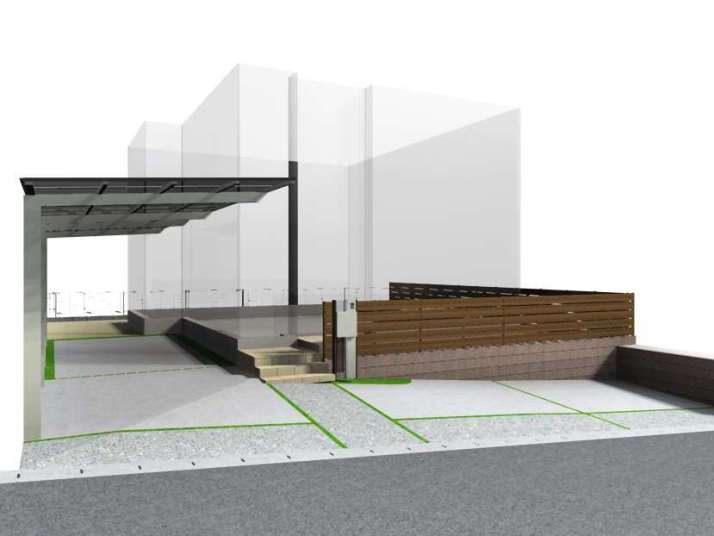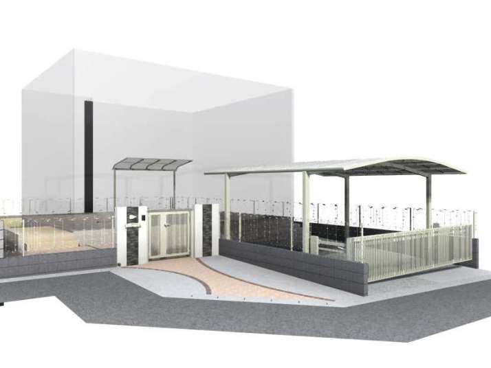 TOYO.化粧ブロック ウィンズロック、リクシル.ファンクションユニット ウィルモダン、名古屋モザイクタイル.シクラス300角、リクシル.ライシスP型フェンス、リクシル.アルメッシュフェンス1型、リクシル.ネスカFカーポート |