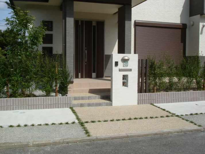 ・コンクリートは洗い出しと刷毛引芝目地で仕上げました |