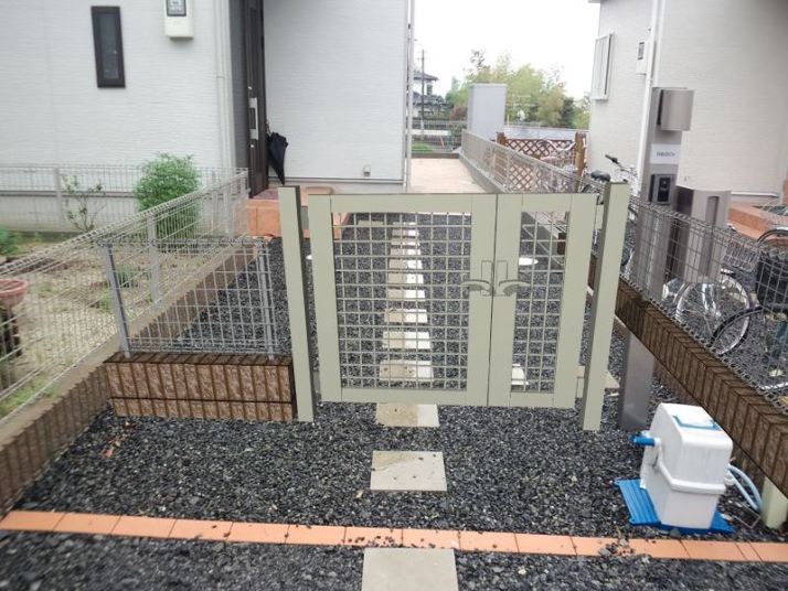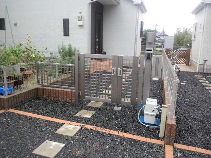建売時のオープン外構を門扉、フェンス、化粧ブロックを施工してクローズ外構にしました。 |