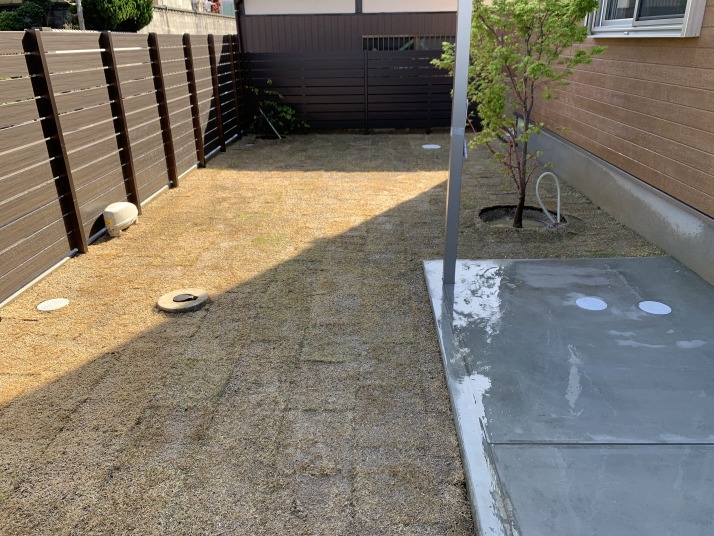 新築外構工事 福岡市東区 追加工事 芝貼り 完工
