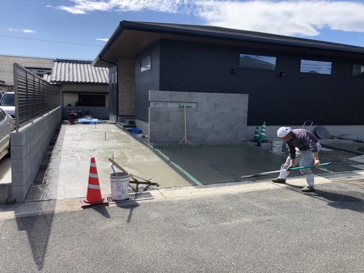 新築外構工事 福岡市東区 コンクリート刷毛引き過程