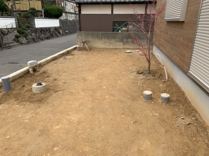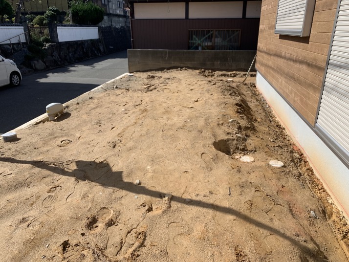 新築外構工事 福岡県古賀市 真砂土整地 芝貼り施工過程 着工前