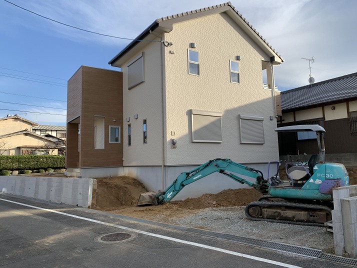 新築外構工事 福岡県古賀市 掘削 砕石敷