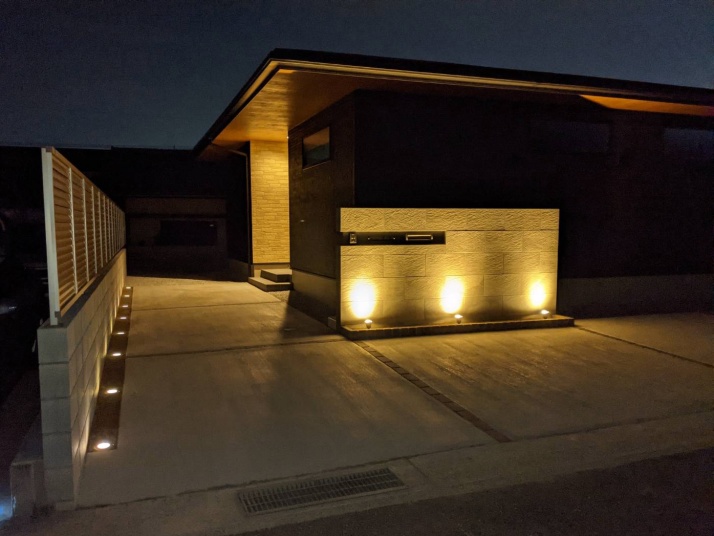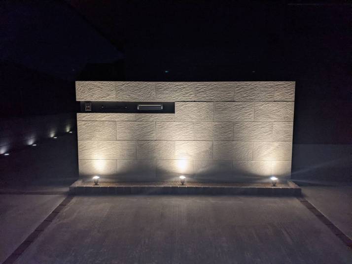 新築外構工事 福岡市東区 門まわり 昼 新築外構工事 福岡市東区 門まわり 夜