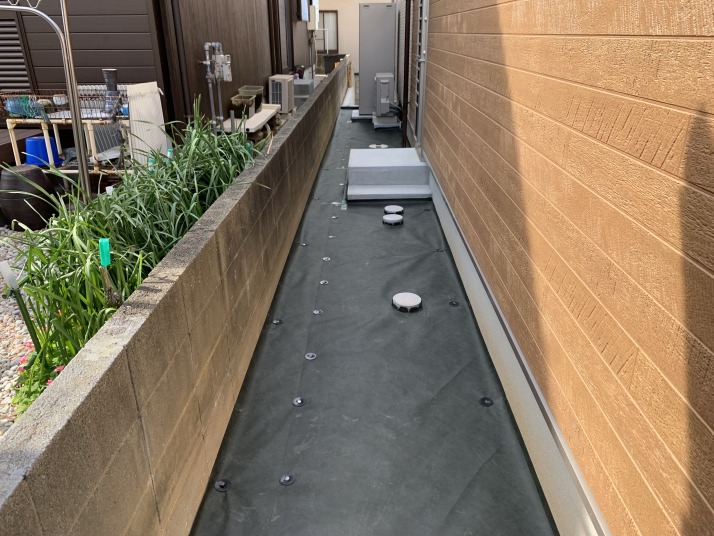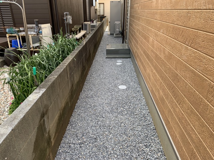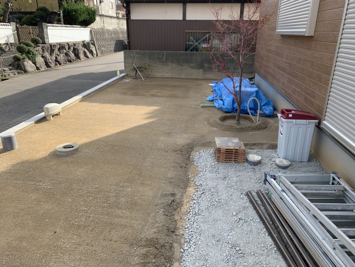 新築外構工事 福岡県古賀市 防草シート砂利敷施工過程 砂利敷 水洗い