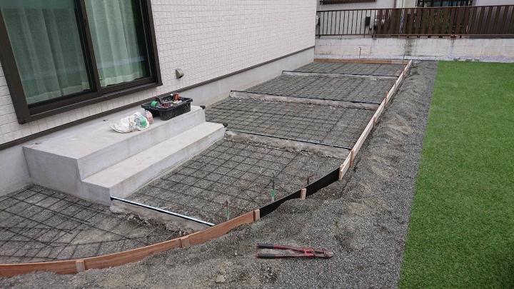 枠入れ+ワイヤーメッシュ敷完了 |