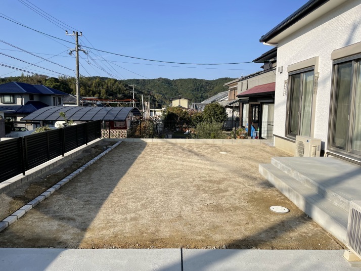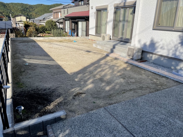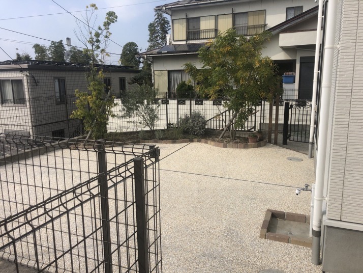 新築外構工事 福岡県古賀市 防草シート砂利敷 完工