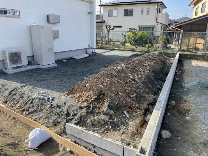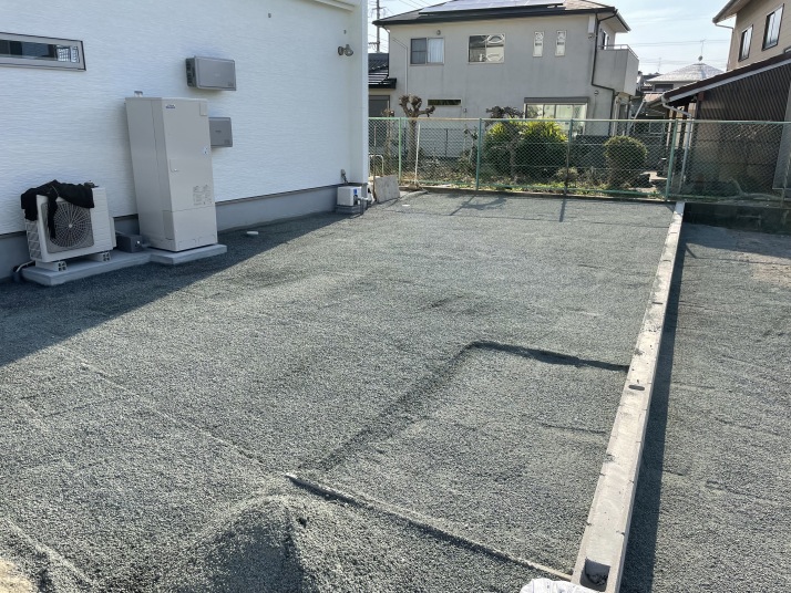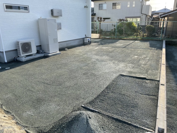 新築外構工事 福岡県古賀市 車庫掘削 砕石敷