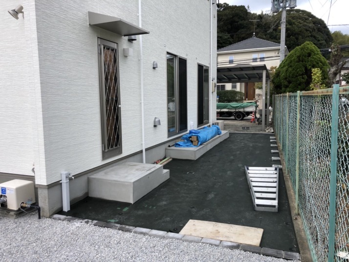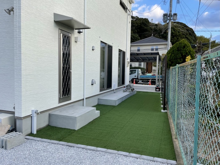 新築外構工事 福岡県古賀市 防草シート人工芝人工芝貼り