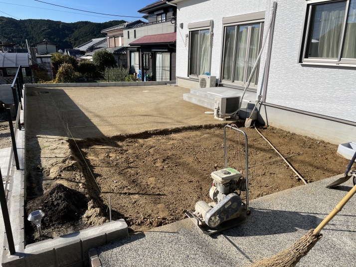 リフォーム外構工事 福岡県宗像市 砕石敷、散水+転圧