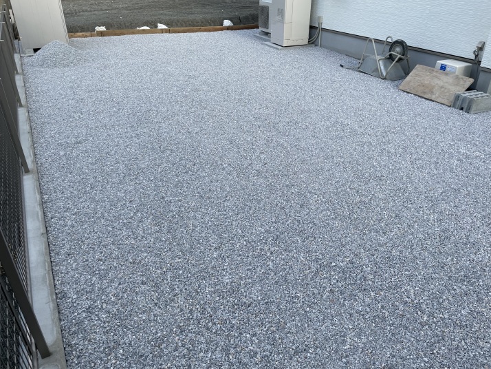 新築外構工事 福岡県古賀市 防草シート砂利敷 砂利敷