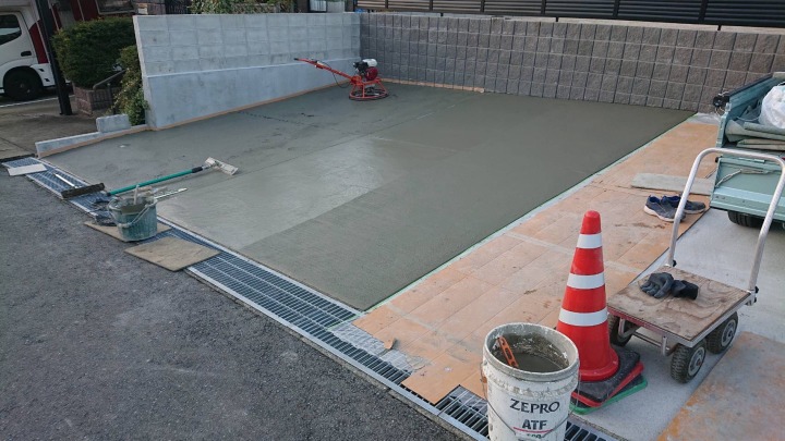 リフォーム外構工事 福岡県宗像市 コンクリート刷毛引き過程