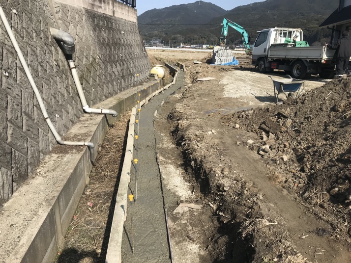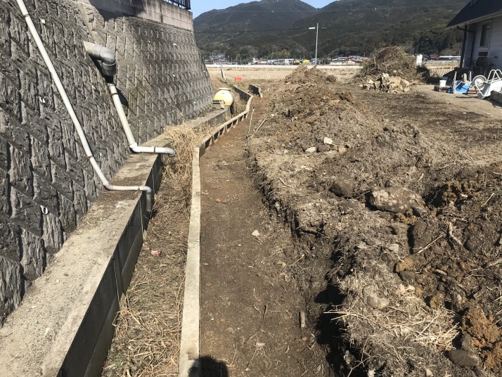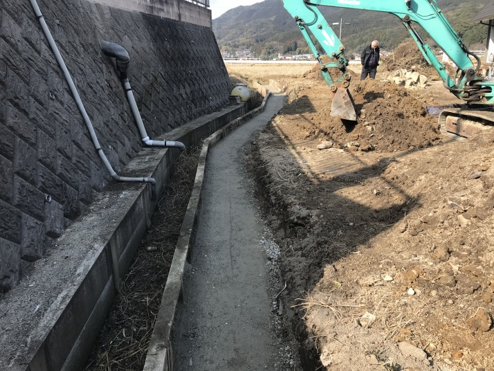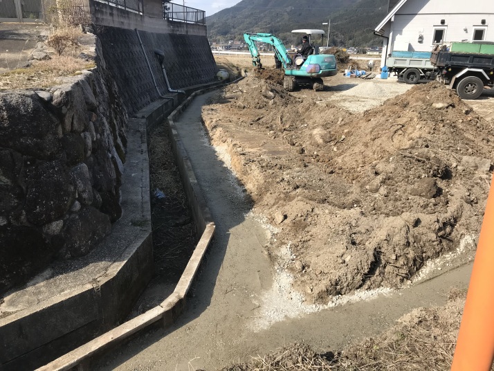 掘削+コンクリート砕石敷+散水+転圧完了 |