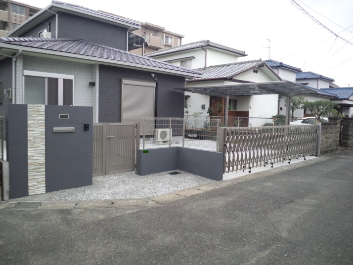 新築外構施工例新築外構施工例 門まわり 全体像 福岡県古賀市新築外構施工例 門まわり 全体像 福岡県古賀市